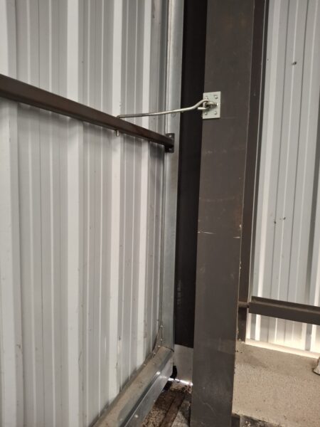Lors de la manipulation de la porte 2, penser à libérer au préalable le crochet de la porte 1 qui la relie au bâtiment, pour ne pas le tordre.