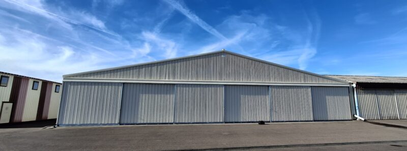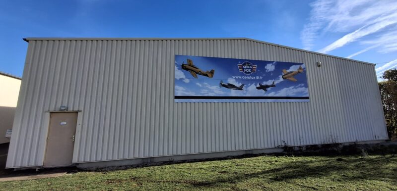 Dans le hangar “AEROFOX” (côté nord), entrée piéton côté route